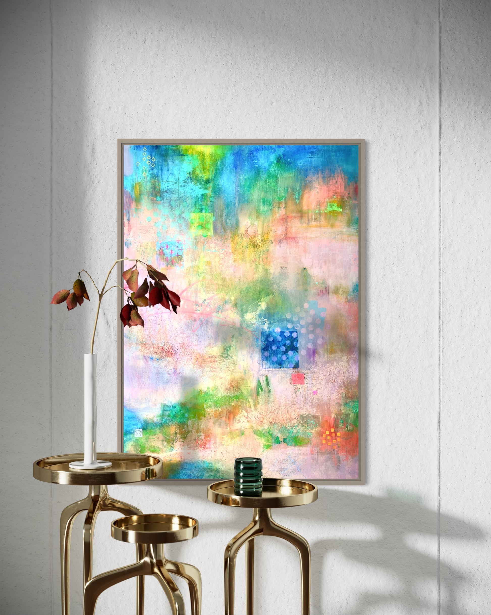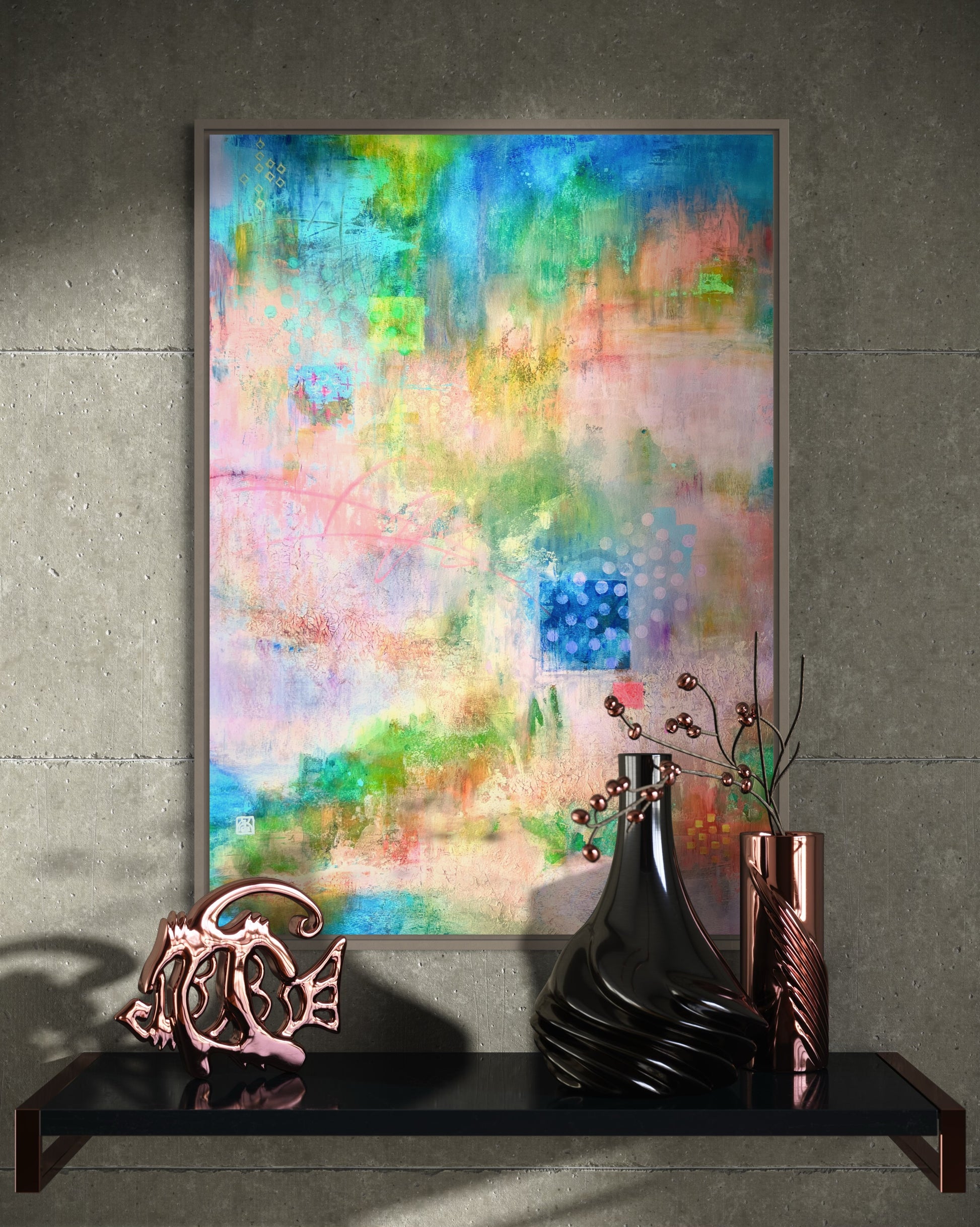 "In the Forest" is a captivating mixed media and oil painting that evokes the serene beauty of a warm sunrise over mountain ranges, with reflections of water and the expanse of the sky. The abstract composition captures the essence of nature’s tranquility, inviting viewers to immerse themselves in the peaceful ambiance of the forest. With its vibrant colors and dynamic textures, "In the Forest" brings a touch of natural harmony and calm to any space.
